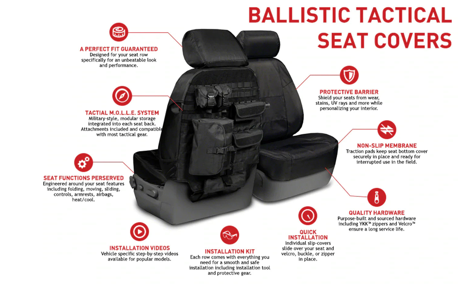 Enhance your ride with seat covers that offer unparalleled durability, protection, and tactical functionality.