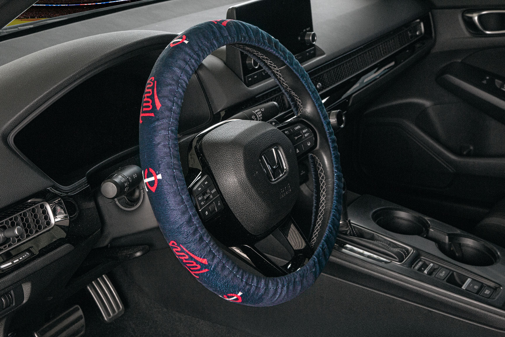 Take the wheel with Twins printed steering wheel cover! Embrace the enduring spirit of the Twins with every drive. Our premium cover proudly displays the iconic Twins logo, evoking memories of historic victories. Drive in comfort and team pride – a must-have for devoted fans.